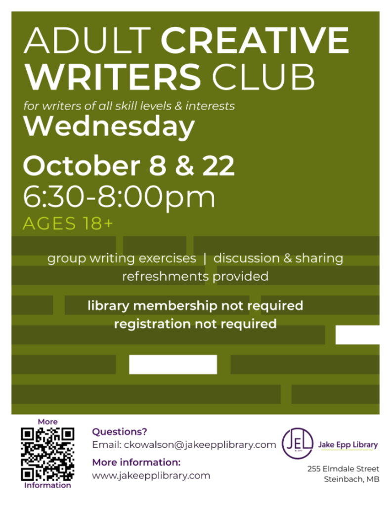 Event is free, a library membership is not required, and all programs are open to both Steinbach residents and non-residents.