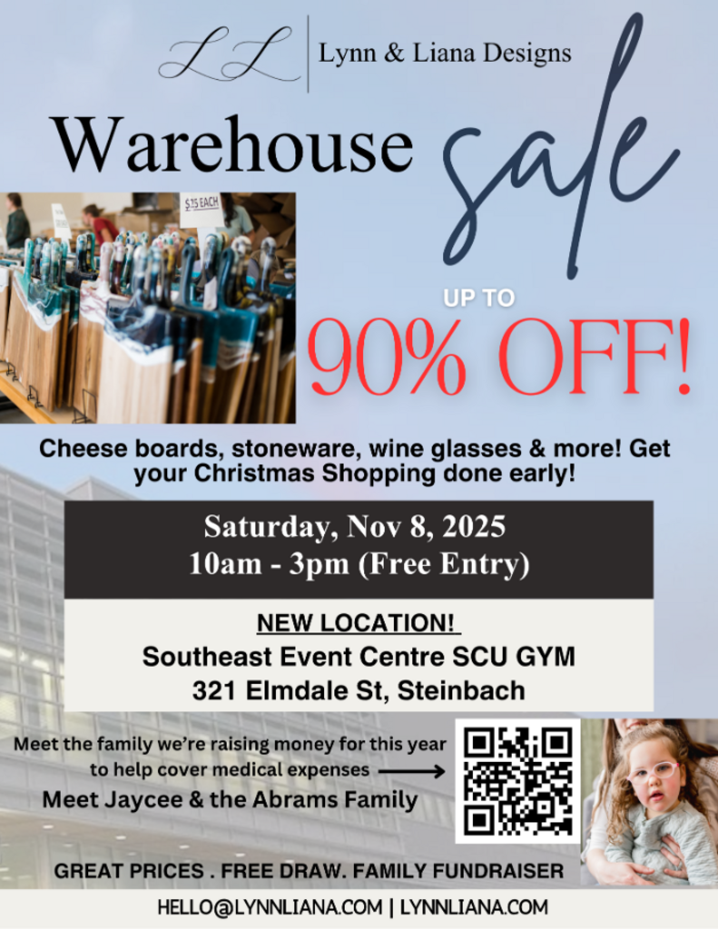 We are thrilled to share this year we are raising funds for a local family here in Steinbach who have been battling many medical expenses to help support their beautiful 3.5 year old Jaycee. The Abrams family have been a part of our local community for many years and it's time to show them our love and support. A portion of our proceeds from our warehouse sale will be donated towards the family, plus, there will be opportunity to donate direct to the family during the warehouse sale event.
