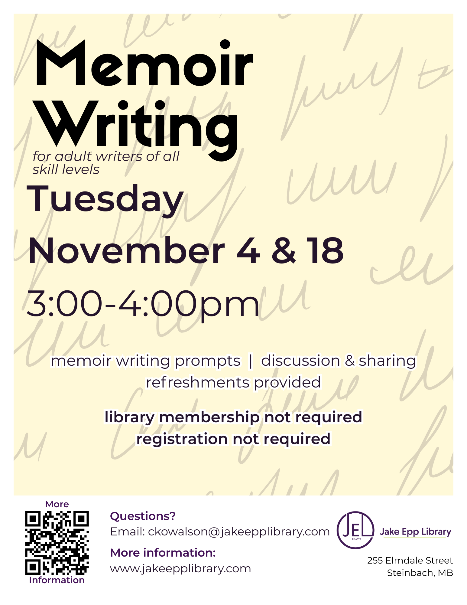 Event is free, a library membership is not required, and all programs are open to both Steinbach residents and non-residents.