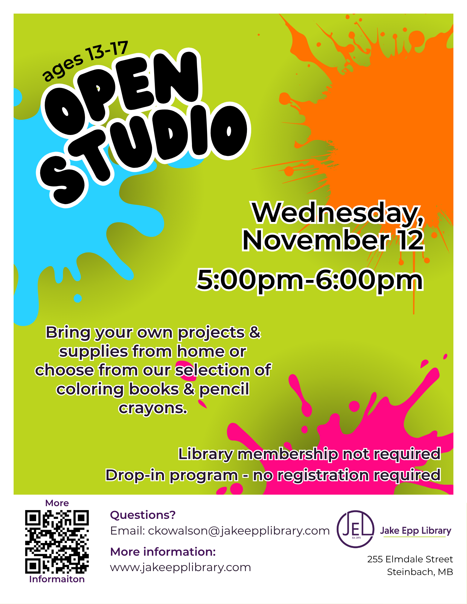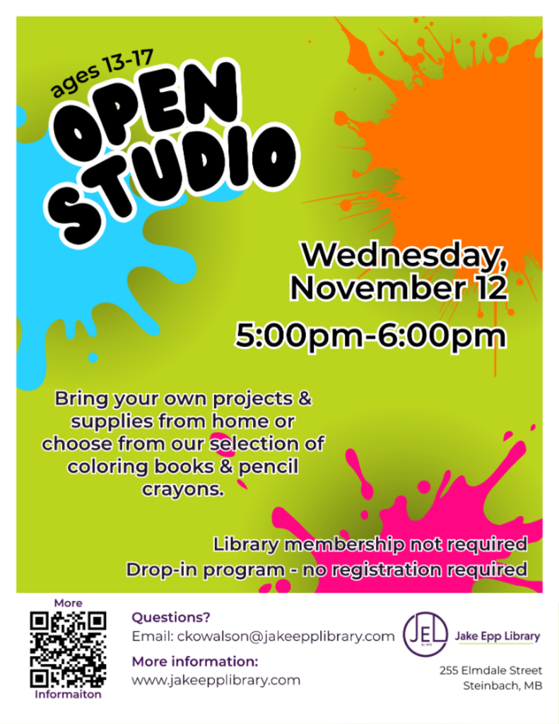 Event is free, a library membership is not required, and all programs are open to both Steinbach residents and non-residents.