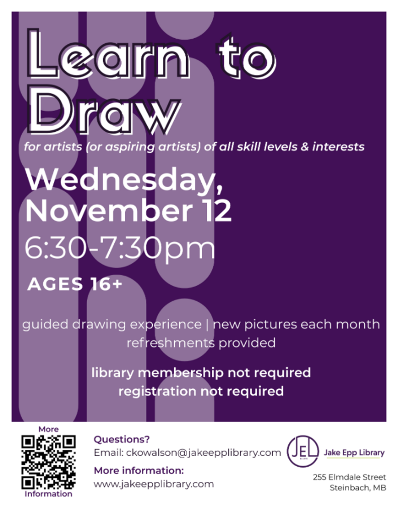 Event is free, a library membership is not required, and all programs are open to both Steinbach residents and non-residents.