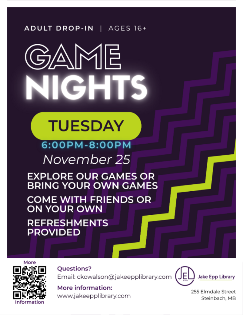 Event is free, a library membership is not required, and all programs are open to both Steinbach residents and non-residents.