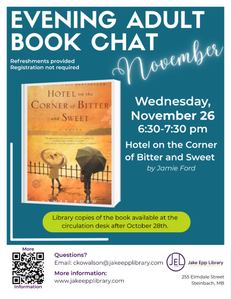 Event is free, a library membership is not required unless you need to check out a copy of the book, and all programs are open to both Steinbach residents and non-residents.