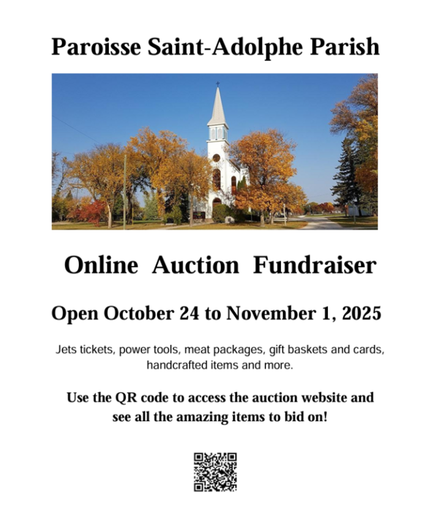 The St Adolphe Parish Online Auction is open for bidding until Saturday, November 1st, 3pm.