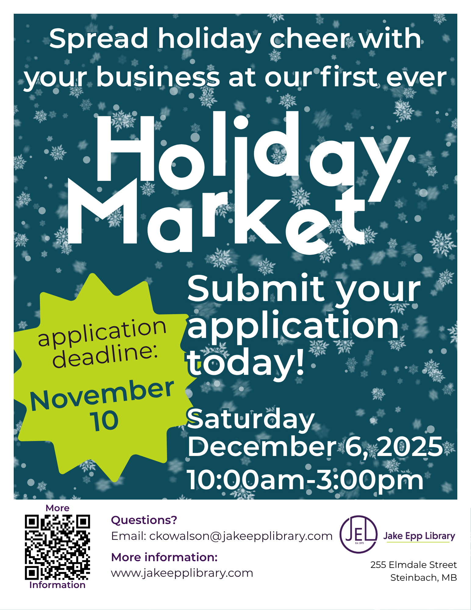 Sellers, please pick up or download an application form and return it to the Jake Epp Library Circulation Desk by Monday November 10th.