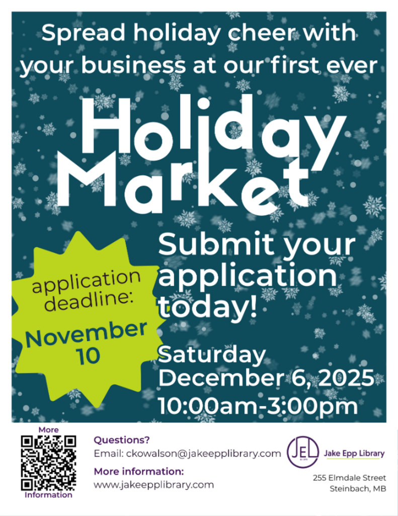 This event is open to residents and non-residents of Steinbach, and a library membership is not required to participate!