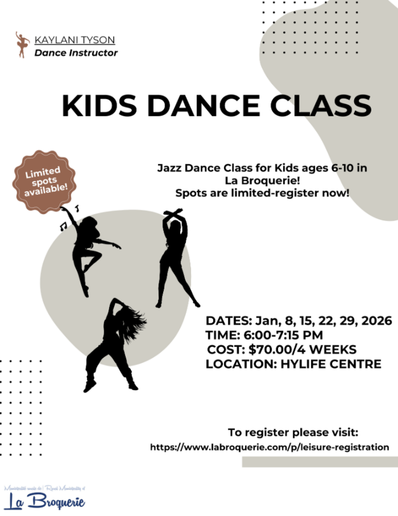 Join our new Kids Jazz Dance Class here in La Broquerie, instructed by Kaylani Tyson!
