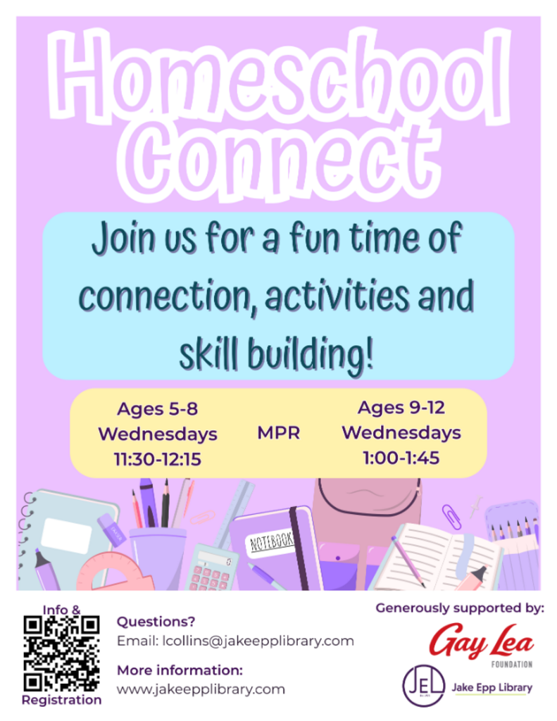 Join us for Homeschool Connect, a social and activity-based program for local homeschoolers! We will enjoy a variety of activities, such as crafts, board games, and improv. This gives kids the chance to connect, learn, and have fun together.