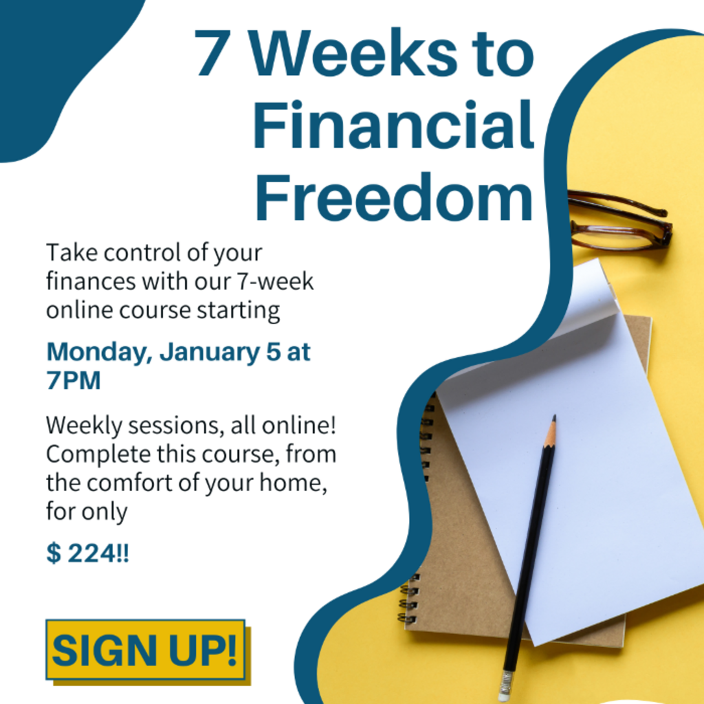 Give the gift of financial confidence with 7 Weeks to Financial Freedom! This 7-week online course helps participants take control of their finances, build smart habits, and plan for the future — all from the comfort of home.