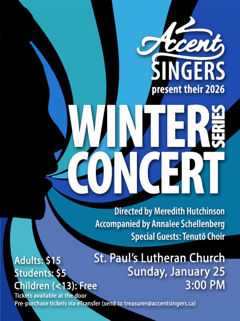 Accent Singers will be performing their Winter Series Concert, featuring special guest Tenutō Choir.
