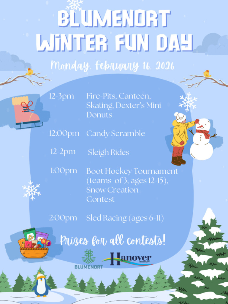 Blumenort Winter Fun Day is coming up on February 16, 2026 at Blumenort Park (Abe G. Penner Park)! βοΈβοΈ
