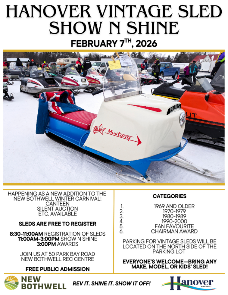 The Hanover Vintage Sled Show N Shine is hitting the New Bothwell Winter Carnival on February 7, 2026!