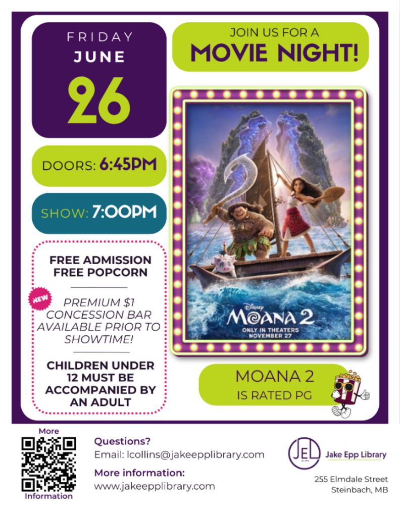 Join us for a fun, family-friendly movie night at the Jake Epp Library!
