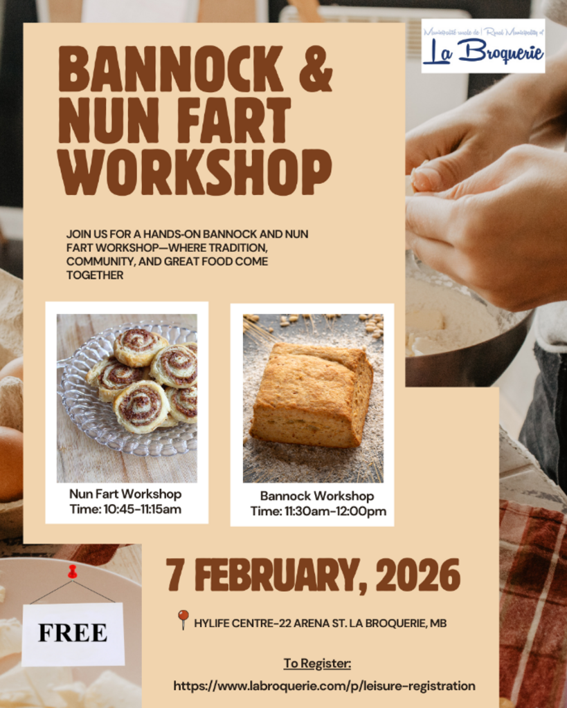 A few highlights for our Winter Family Fun Day February 7th! We will be hosting Bannock and Nun Fart workshops throughout the day, Sign up today!