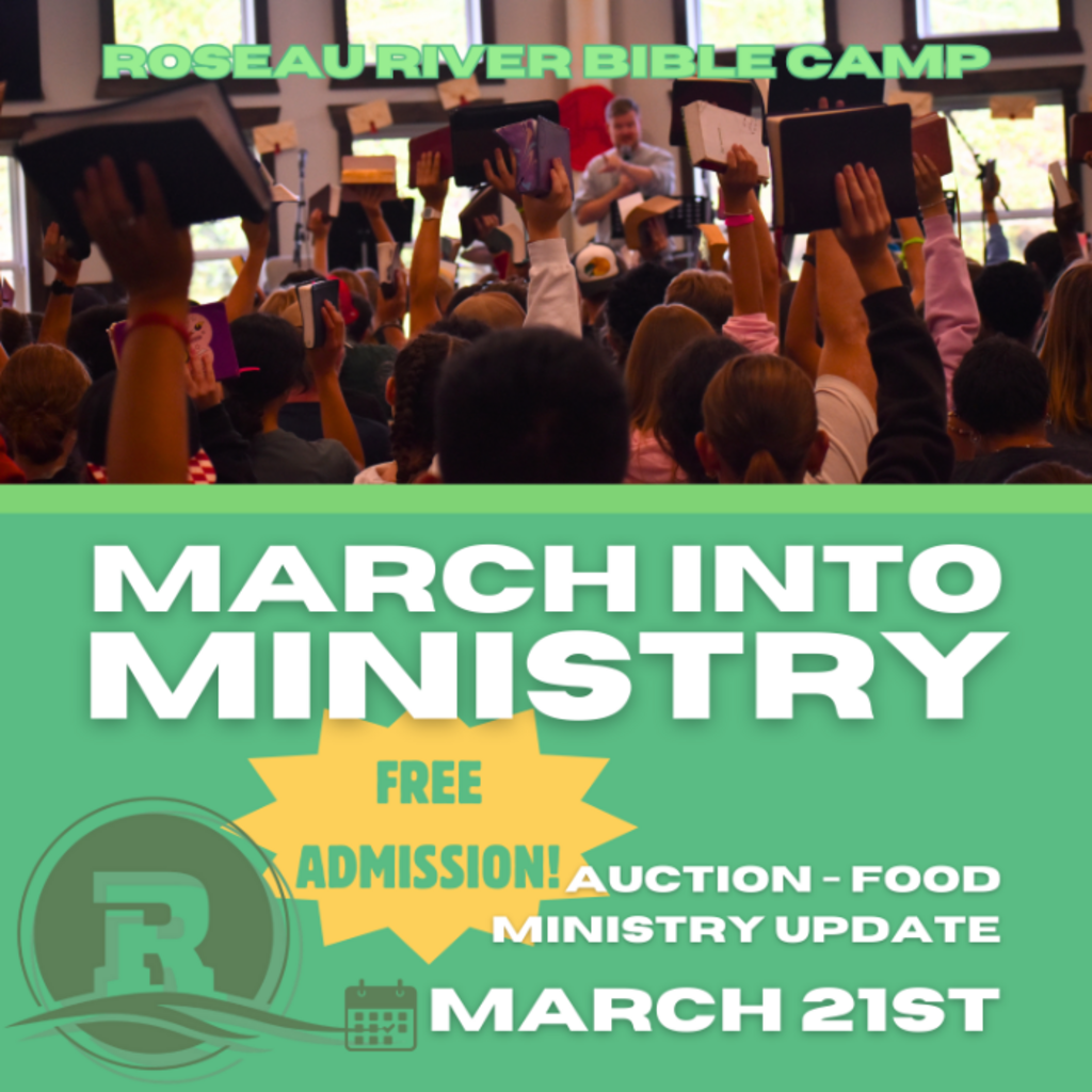 March Into Ministry with Roseau River Bible Camp! Enjoy a free BBQ supper with an auction to follow in support of RRBC!