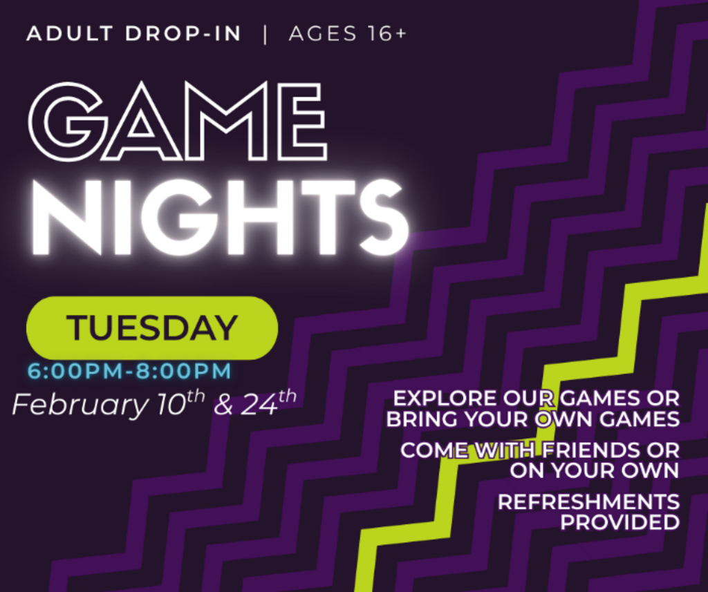 Come for a self-directed time of socializing and playing a game or two for the evening.