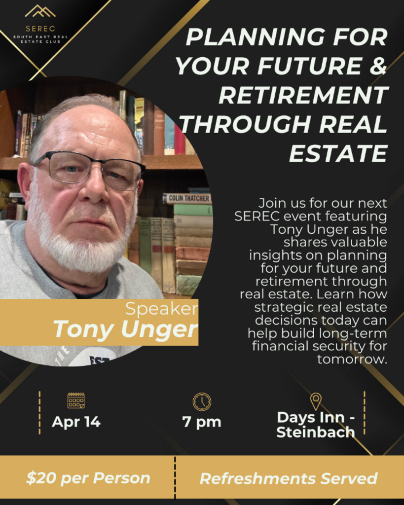 Join us for our next SEREC meet featuring Tony Unger as he shares valuable insights on planning for your future and retirement through real estate. Discover how strategic real estate decisions today can help you build long-term financial security for tomorrow. 🏡📈