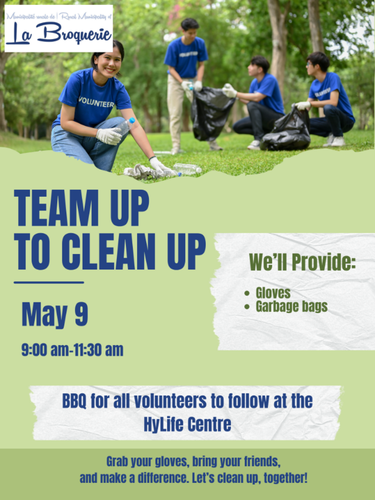 Join us on May 9 from 9:00–11:30 AM as we Team Up to Clean Up the community!